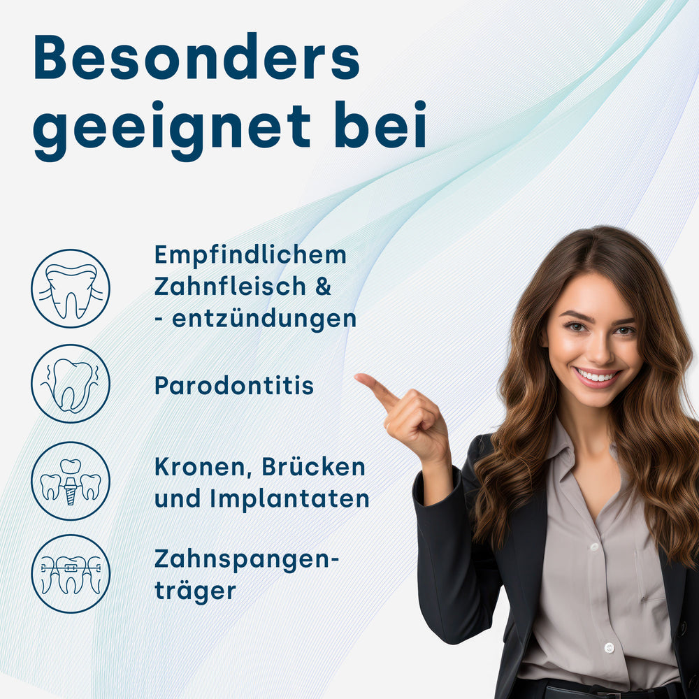 - „Besonders empfehlenswert bei empfindlichen Zähnen“