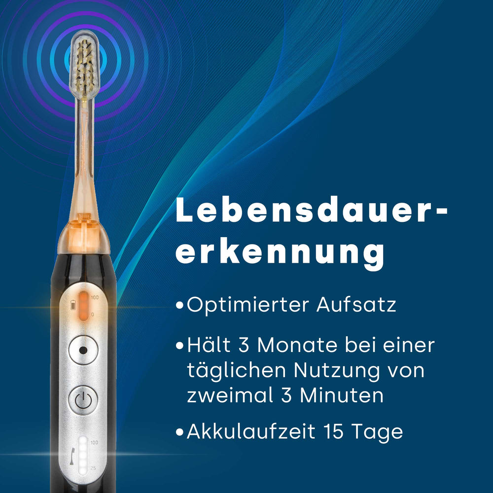 Die speziell entwickelte Ultraschall Zahnpasta verstärkt den Reinigungseffekt zusätzlich. Sie enthält Mikrobläschen, die durch Ultraschallwellen aktiviert werden und einen Sog-Effekt erzeugen. Dieser löst Plaque und Bakterien selbst an schwer zugänglichen Stellen. Wir empfehlen die Verwendung von Ultraschall Zahnpasta für ein optimales Reinigungsergebnis.