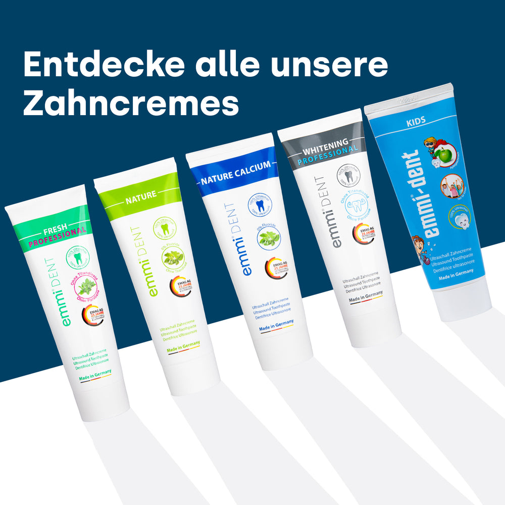 Vertrauen Sie auf die Expertise von emmi-dent, dem weltweit führenden Anbieter von Ultraschall-Zahnpflege. Unsere Whitening Ultraschall Zahnpasta wurde von Experten entwickelt und klinisch getestet, um Ihnen eine herausragende Qualität und innovative Technologie zu bieten. Setzen Sie auf emmi-dent und erleben Sie den Unterschied!