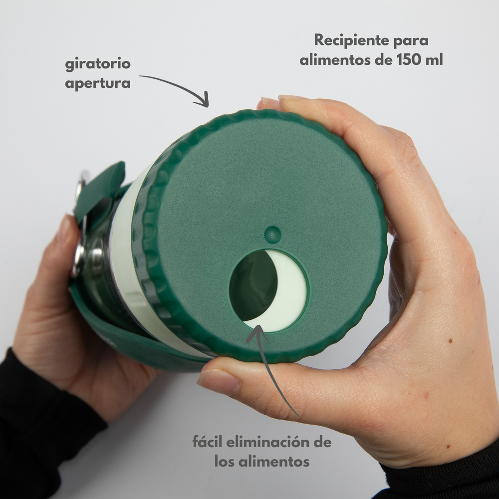 • Abastecimiento completo: agua y snacks en una sola botella: ideal para llevar.