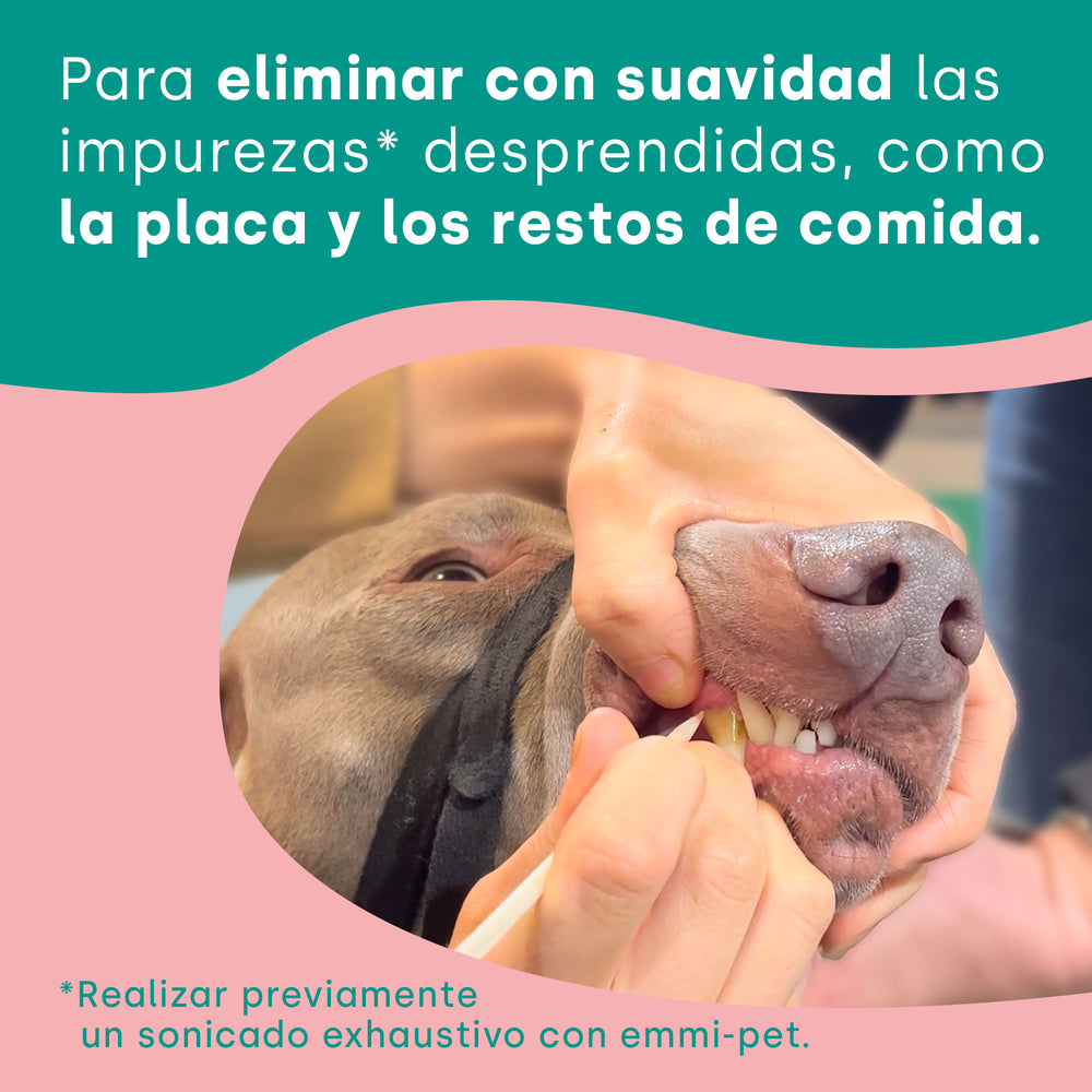 Los palitos de palo de rosa emmi-pet han sido desarrollados especialmente para garantizar una limpieza suave de los dientes de su mascota. El material natural del palo de rosa es suave pero lo suficientemente resistente como para eliminar depósitos rebeldes sin irritar las encías sensibles. Combinando la tecnología de ultrasonidos con los palitos de palo de rosa, obtendrás un cuidado dental óptimo y completo que promueve el bienestar de tu mascota y previene posibles problemas dentales.