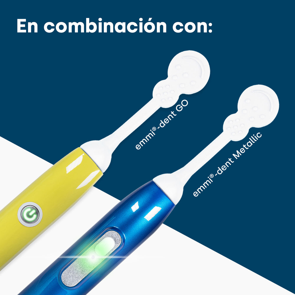Tenga en cuenta que los cabezales de cepillo ultrasónico de emmi-dent Metallic o Go solo se pueden utilizar para la limpieza dental y la higiene bucal con estos modelos.