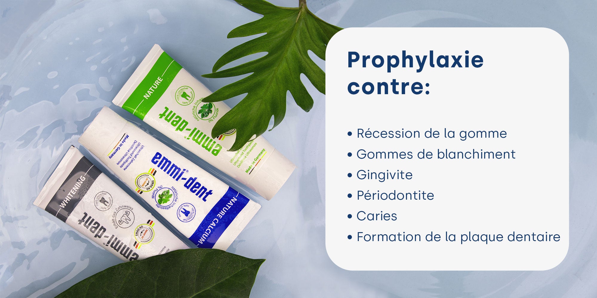 Découvrez le dentifrice innovant d'emmi-dent, spécialement développé pour lutter efficacement contre le tartre. Notre formule unique offre non seulement une protection de base contre la plaque et le tartre, mais favorise également la santé bucco-dentaire générale et réduit la mauvaise haleine. Grâce aux ingrédients avancés contenus dans le dentifrice emmi-dent, la formation de tartre est réduite tandis que les dents sont nettoyées et soignées en douceur.