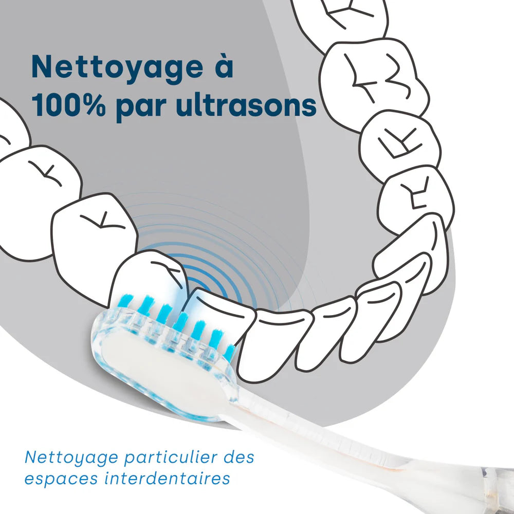 • Nettoyage en profondeur : La technologie à ultrasons élimine la plaque et les bactéries sans brossage mécanique.