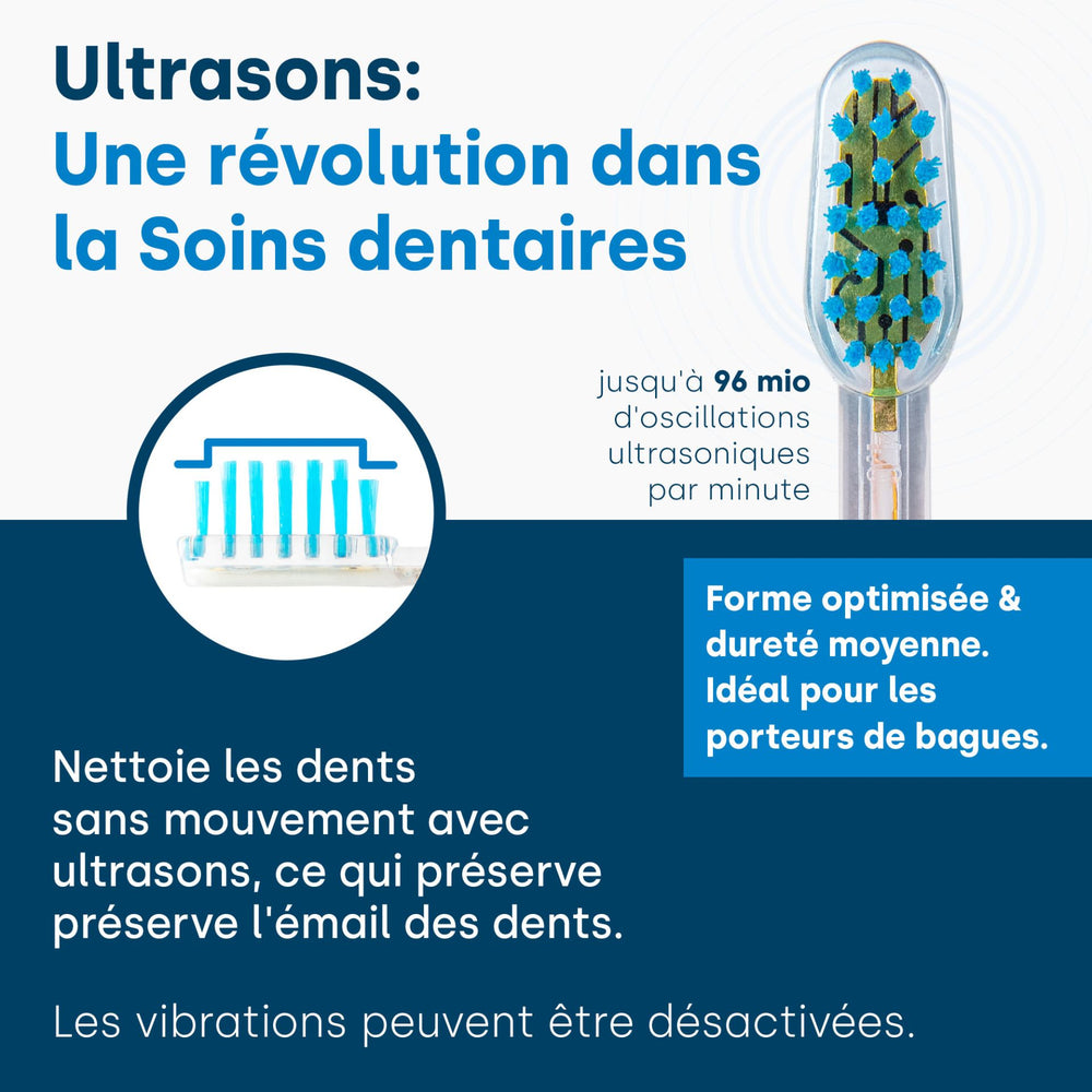 Ultrasons 100% originaux pour des dents propres et blanches étincelantes.