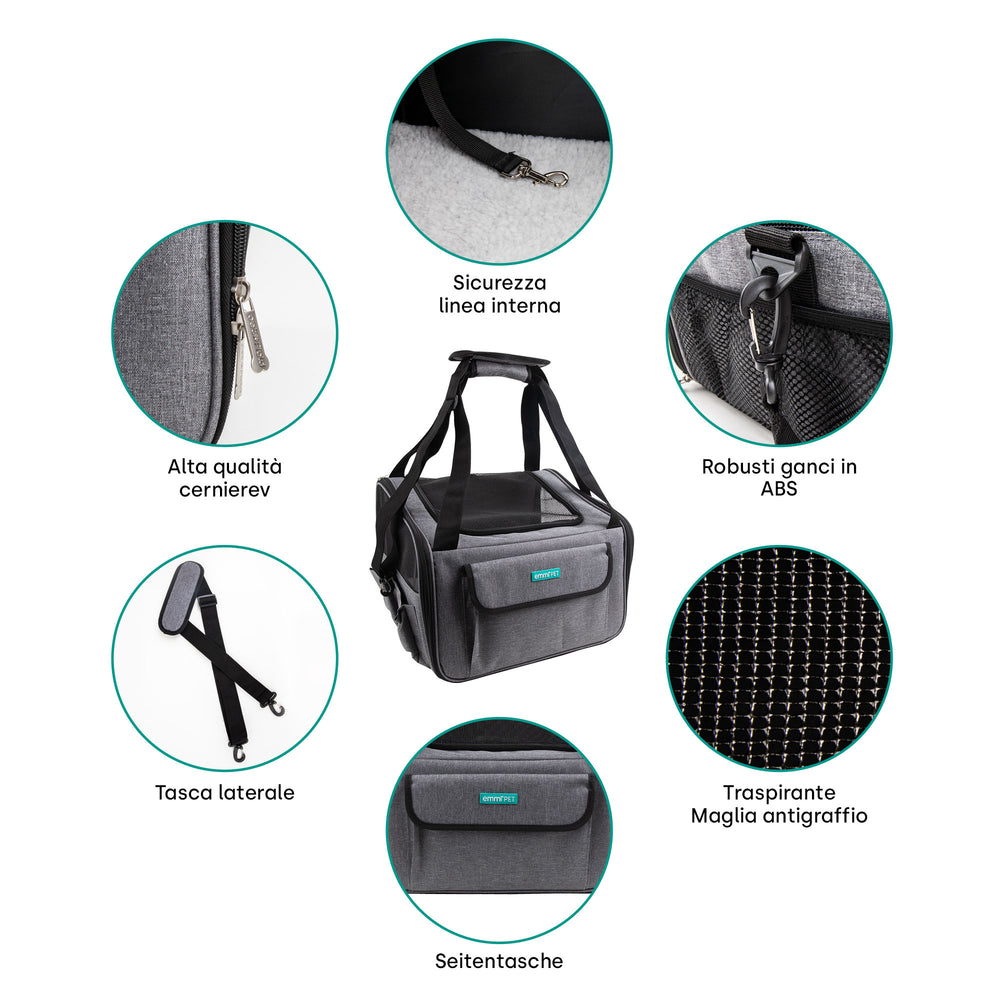 - Trasporto sicuro: la borsa da viaggio emmi-pet grande offre la massima protezione per cani e gatti durante i viaggi brevi o più lunghi.