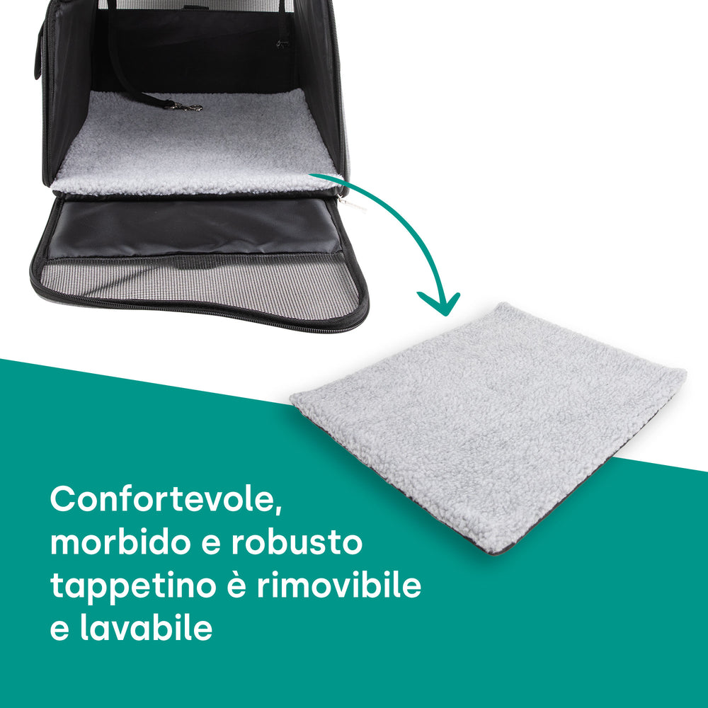 - Adatto per i viaggi: grazie alle sue dimensioni (41,5 x 32 x 30), il box per il trasporto è adatto anche per i viaggi in aereo. Questo può variare a seconda della compagnia aerea.