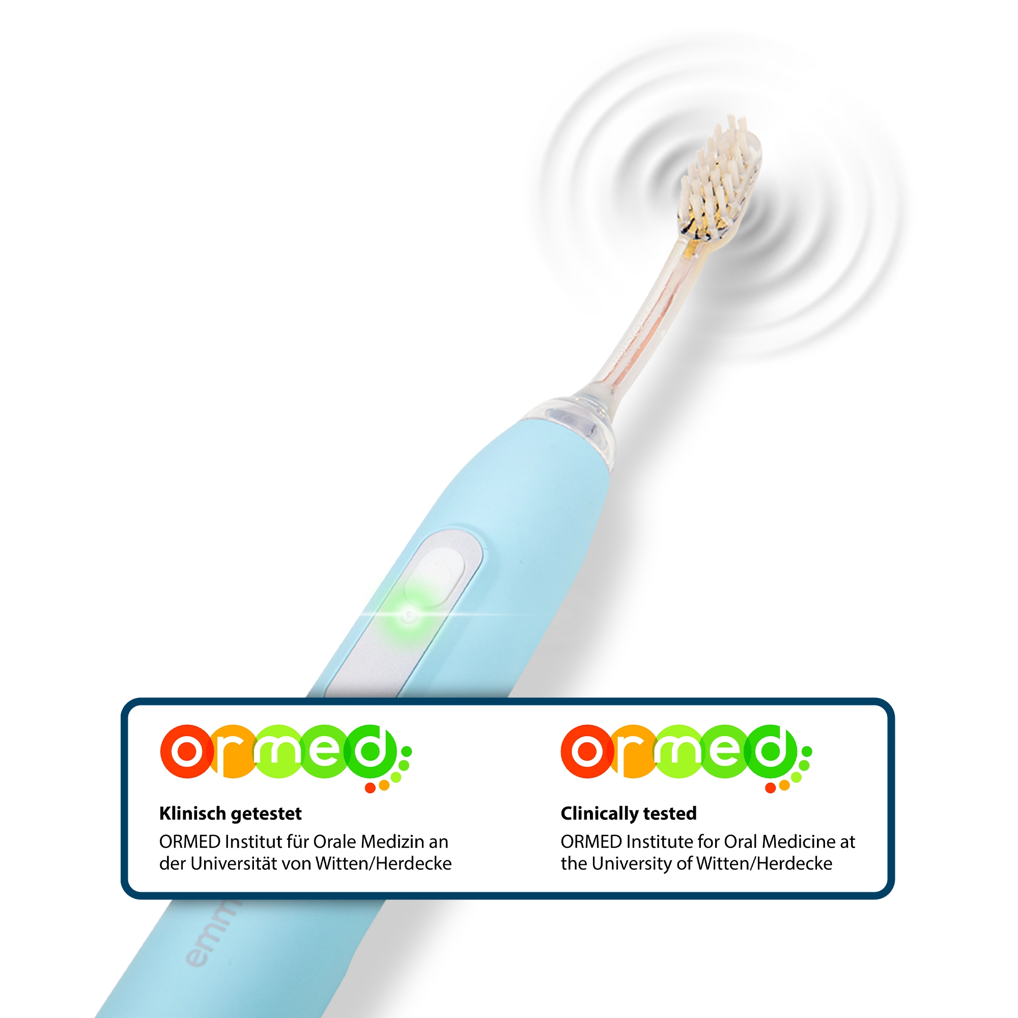 La funzionalità dei nostri spazzolini ad ultrasuoni emmi-dent è stata testata in uno studio clinico dall'Università di Witten/Herdecke . Il Prof. Dr. hcP Gängler, in qualità di direttore generale dell'istituto di medicina orale, valuta il test dei nostri spazzolini ad ultrasuoni emmi-dent con le seguenti parole: "La pulizia dei denti tramite ultrasuoni e senza movimenti di spazzolamento rimuove in modo sicuro e completo la placca e il biofilm. Grazie a questa tecnologia è possibile prevenire i danni causati dallo spazzolamento al colletto dei denti, alle gengive e ai denti. Spazzolino particolarmente adatto a chi ha denti sensibili. L'applicazione senza abrasioni garantisce la prevenzione attiva di lesioni gengivali. Inoltre, l'uso regolare favorisce attivamente la riduzione della gengivite."