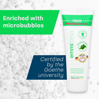 The emmi-dent Fresh ultrasonic toothpaste gives you a long-lasting feeling of freshness. Thanks to its unique ultrasonic technology, it effectively eliminates unpleasant bad breath and leaves you with fresh breath that stays with you all day long.