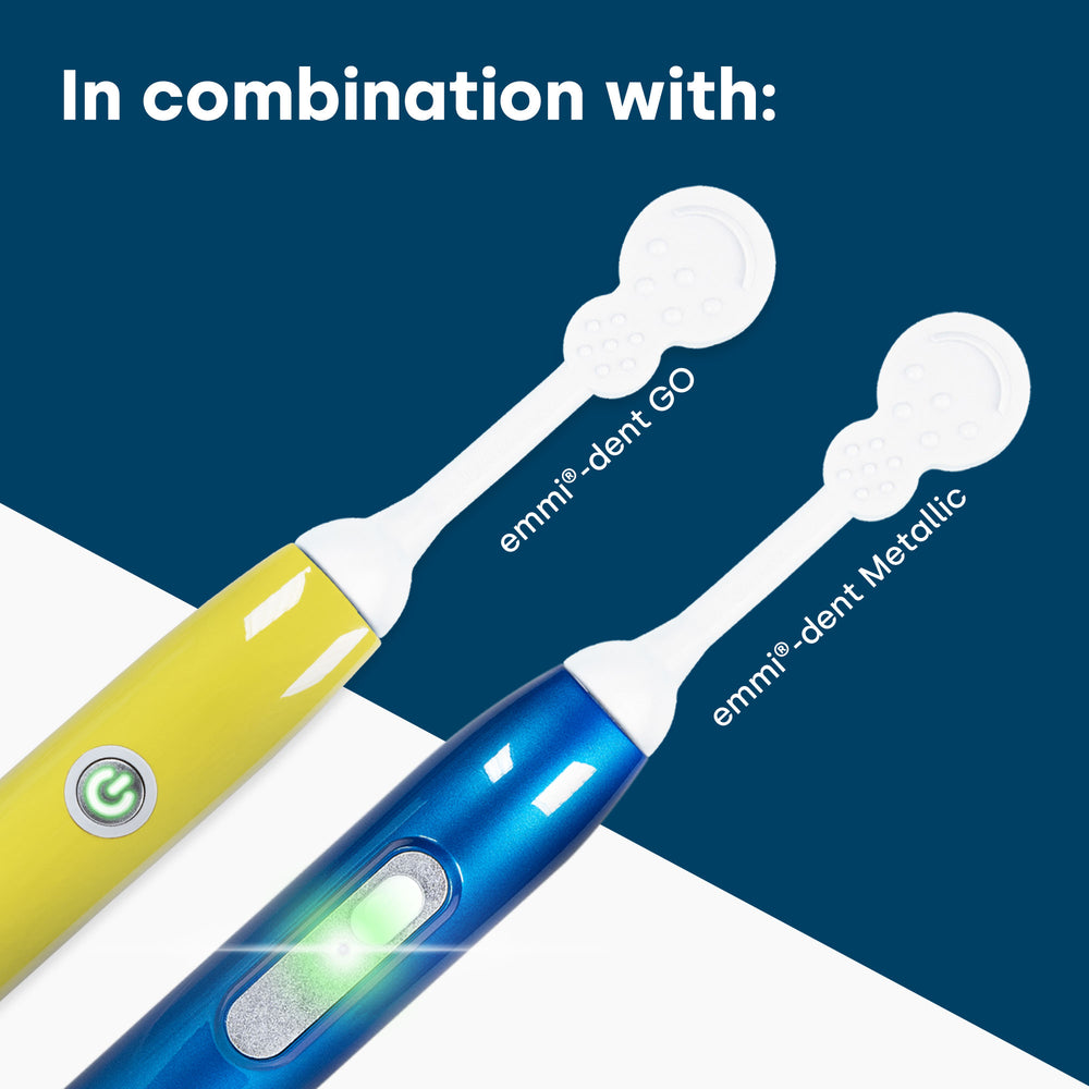 Please note that the ultrasonic brush heads of the emmi-dent Metallic or Go can only be used for tooth cleaning and oral hygiene with these models.